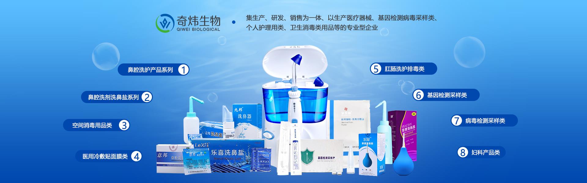 Hangzhou Qiwei Biotechnology Co., Ltd. integrates production, research and development, and sales to produce medical equipment, genetic testing sampling boxes, virus sampling tubes, virus preservation solutions, nasal irrigators, nasal lotions, nasal cleansing salts, enema, Saliva collectors, medical cold compresses, liquid dressings, gynecological gels, squat-free bidets, ear canal spray dressings, personal care products, sanitation and disinfection products, etc. are professional enterprises that have been approved by the State Administration for Industry and Commerce and the State Food and Drug Administration. A high-tech brand production enterprise approved by the management department.